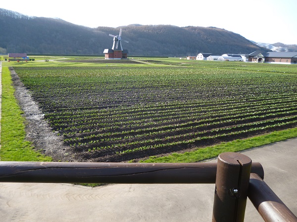 あえて斜め18度くらい?の角度をつけてご覧いただくと、チューリップたちの一番美しい姿をご覧いただけるのでは?と、毎シーズン試行錯誤を繰り返し、設置している3台もある「木製展望台」。